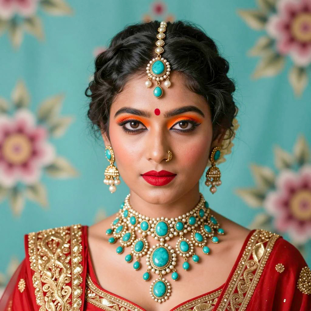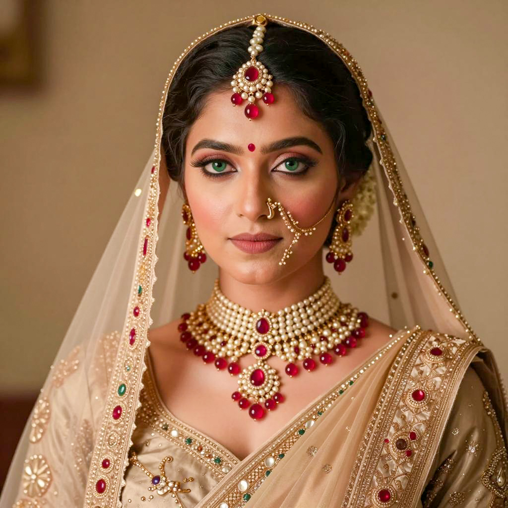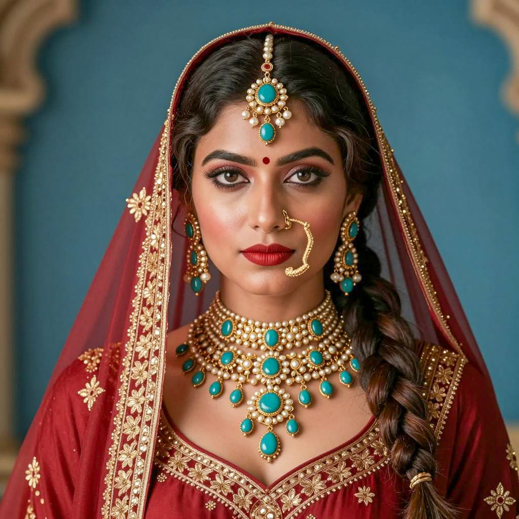 Indian Woman in Traditional Jewelry and Attire