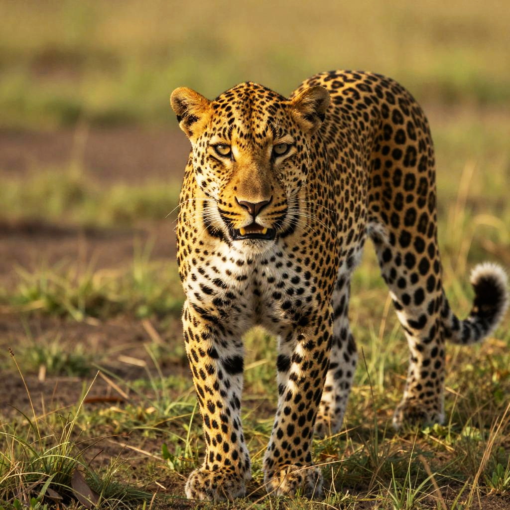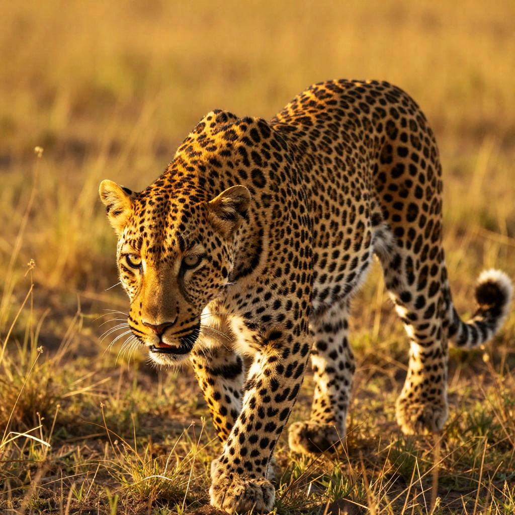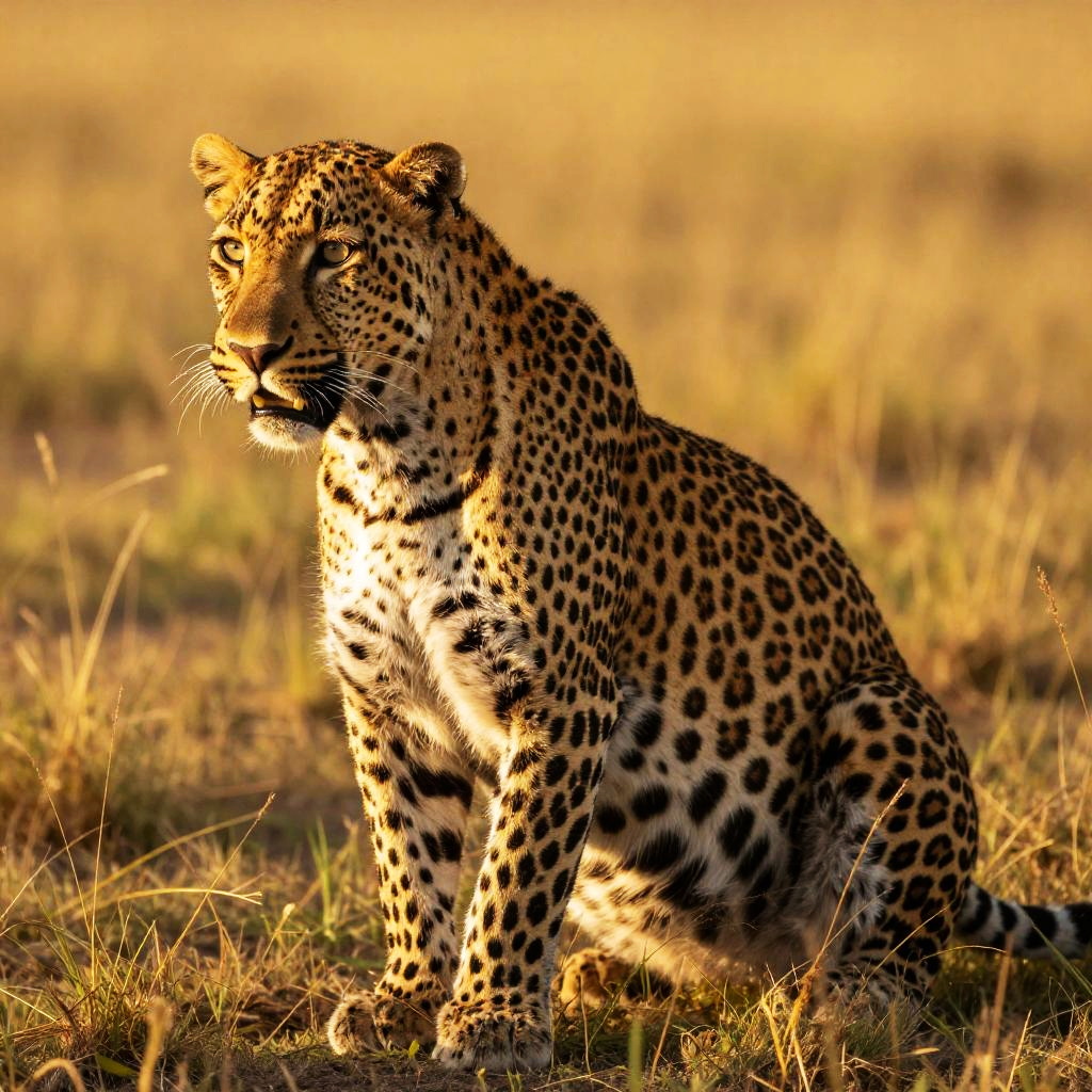 Sunlit Yellow-Gold Leopard in Savannah