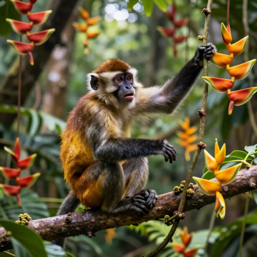 Monkey Swinging in Tropical Rainforest