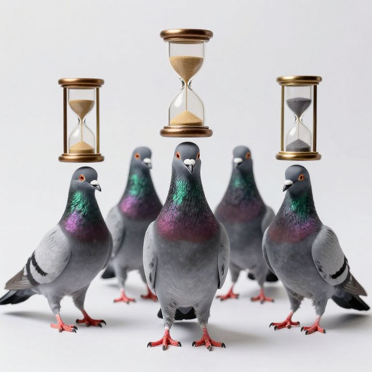 Surreal Pigeons with Miniature Hourglasses