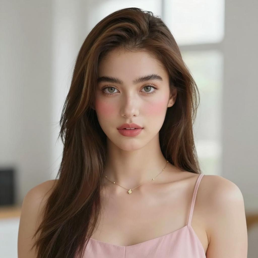 1girl, breasts, denim, jewelry, solo, pants, jeans, cleavage, long hair, tank top, necklace, sitting, bracelet, shoes, sneakers, black hair, looking at viewer, large breasts, traditional media, dark skin, crop top, earrings, realistic, red headwear, window