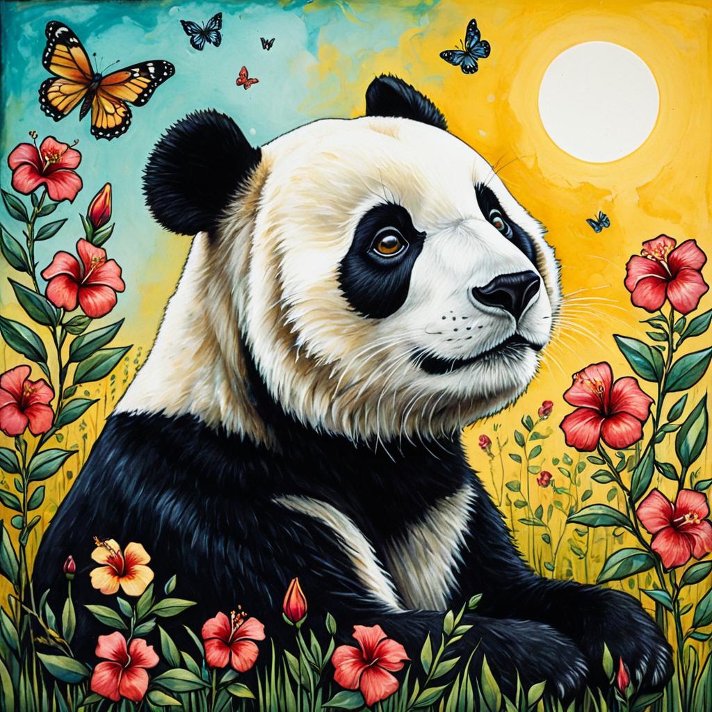 A beautiful cute baby red panda with a huge bouquet of purple tulips, very detailed, background with intricate lacework. Bright detailed eyes. The background is serene. Fine drawing of fur. Bright colors: pastel blue, blue, burgundy, emerald yellow, pink. Shabby chic style