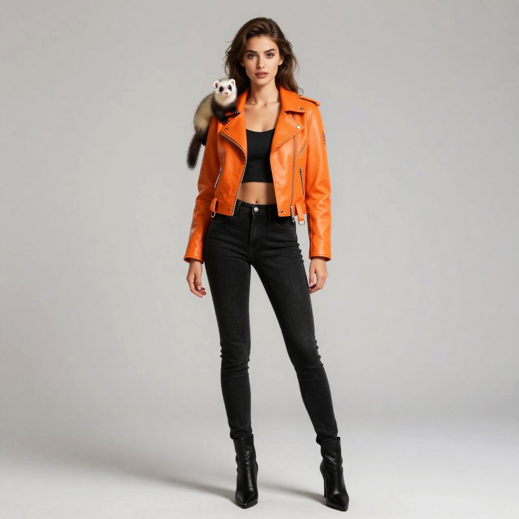 Young Woman in Steampunk Outfit with Mechanical Squirrel