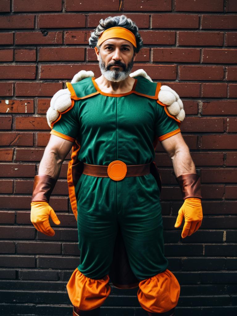 Man cosplay. Wearing Michelangelo costume. Realistic photo. Dressed as Michelangelo --sref 1392