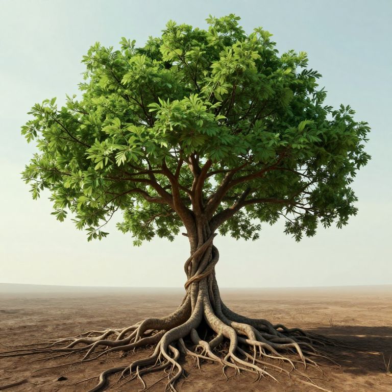 In a surreal Möbius world where roots reach skyward and leaves delve deep into the earth, this solitary tree embodies the paradoxical dance of growth and introspection, inviting contemplation on the cyclical nature of existence and the interconnectedness of life.