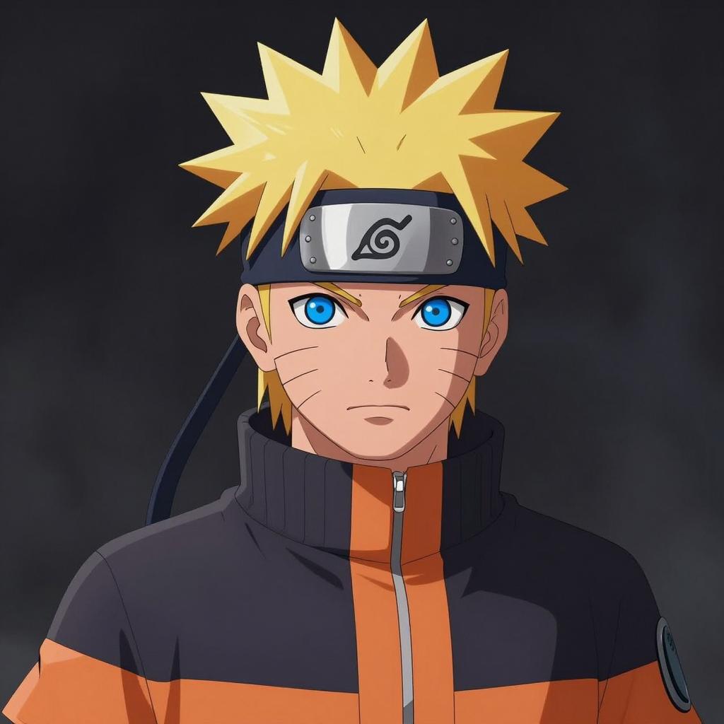 Anime Character Portrait of Young Man in Navy and Orange Outfit