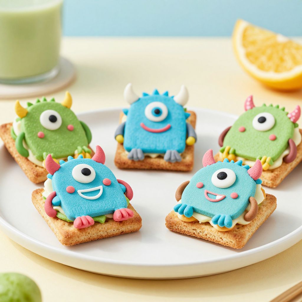 Playful creativity bursts forth in these whimsical cracker sandwiches, transforming simple snacks into joyful monsters that spark imagination and delight, embodying the boundless wonder of childhood.