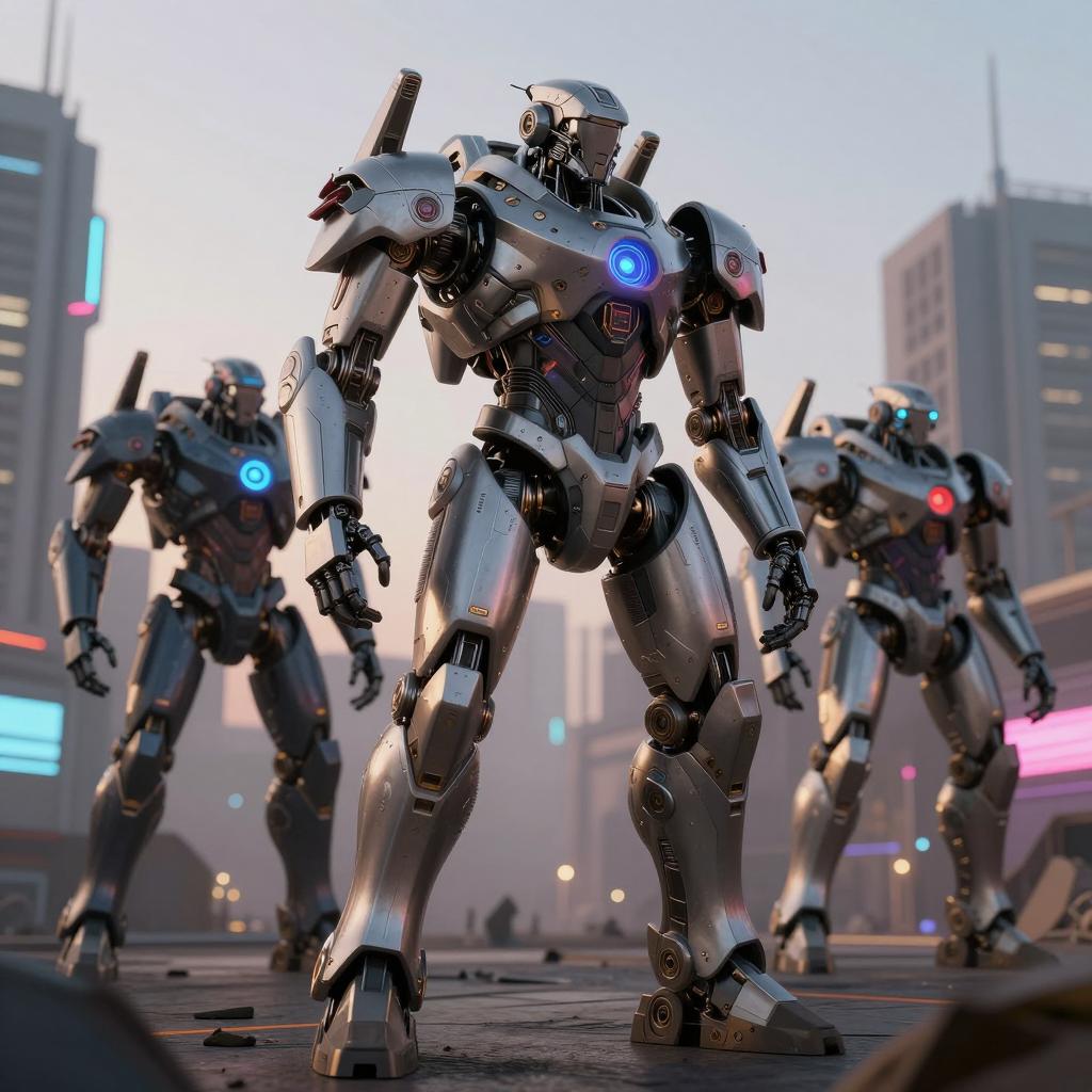 Futuristic Cybernetic Warriors in Urban Wasteland