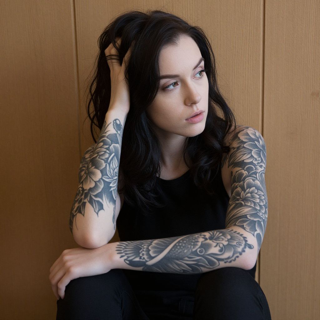 Thoughtful Young Woman with Tattoos