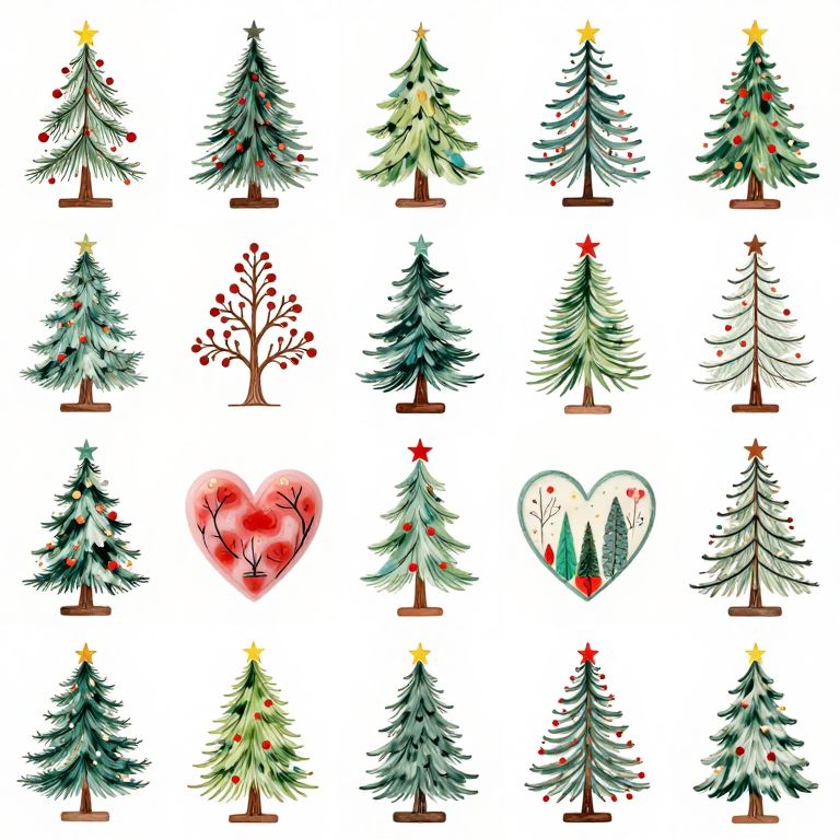 Nature Christmas & Advent Plant Tree Winter Feasts & Celebrations Art Decoration Heart Candle Many Painting and drawing (object) Collection Christmas tree