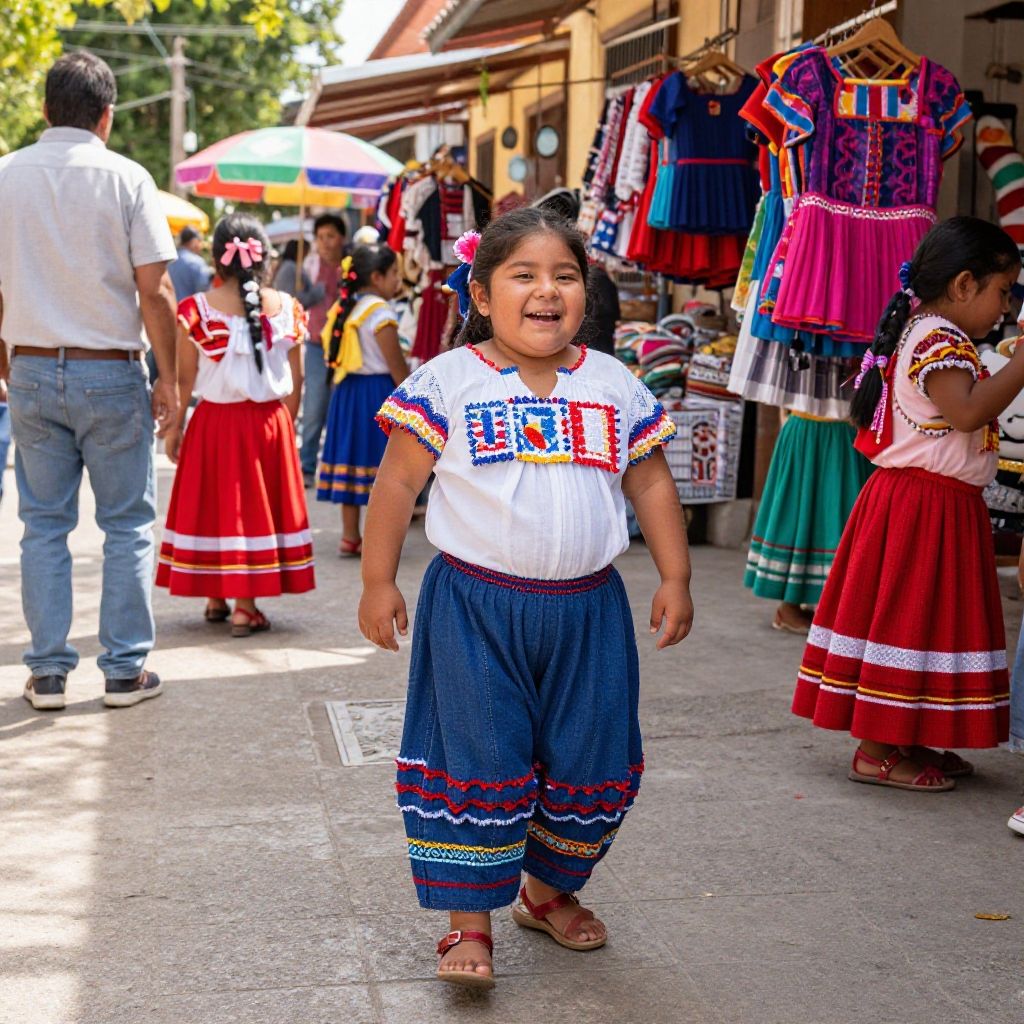 Obese Mexican kid painting a mural on a wall, focused expression, diverse cultural symbols, bright palette, urban street art style, sunny day, detailed architectural elements