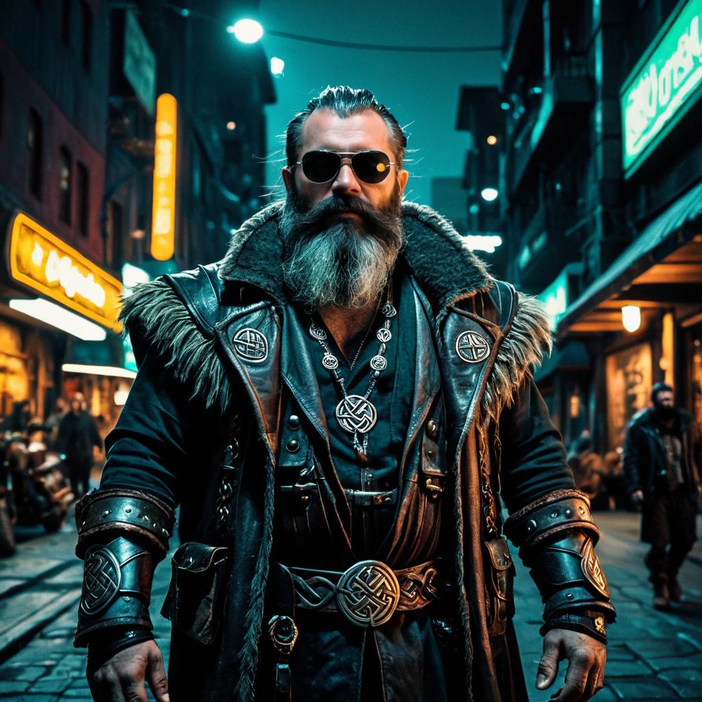 Bearded Dwarf Druid in Cyberpunk Night