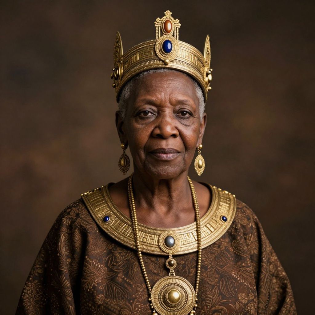 Shamanism Portrait of beautiful, kindly, elderly black woman, beautiful despite age lines, as Empress of the United African Empire, Imperial commission for Her Imperial Majestys Ascendance.,