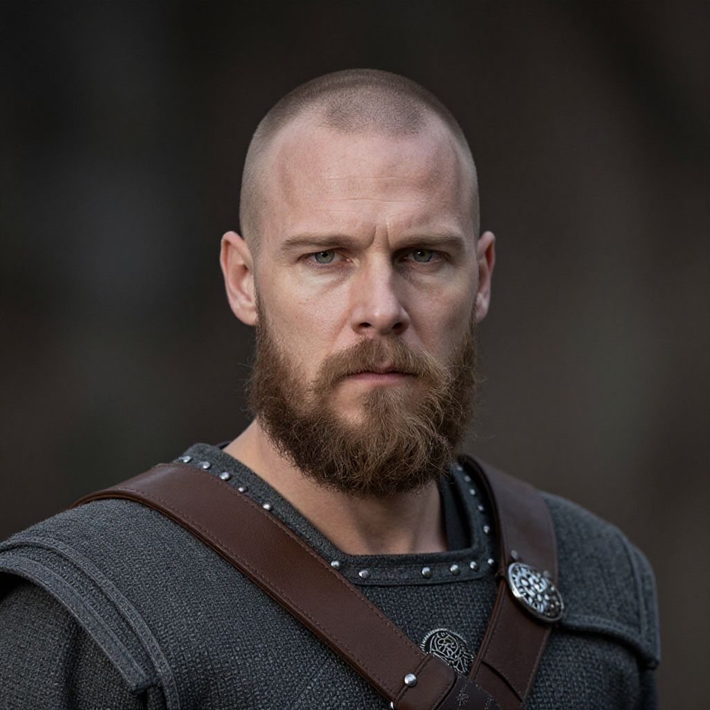 "Viking Warrior Cosplay, a close up of a man in a viking costume with a beard"