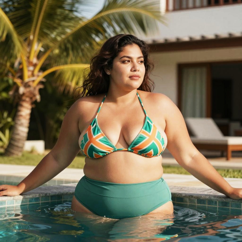 Sunlit Infinity Pool: Plus-Size Latina Portrait