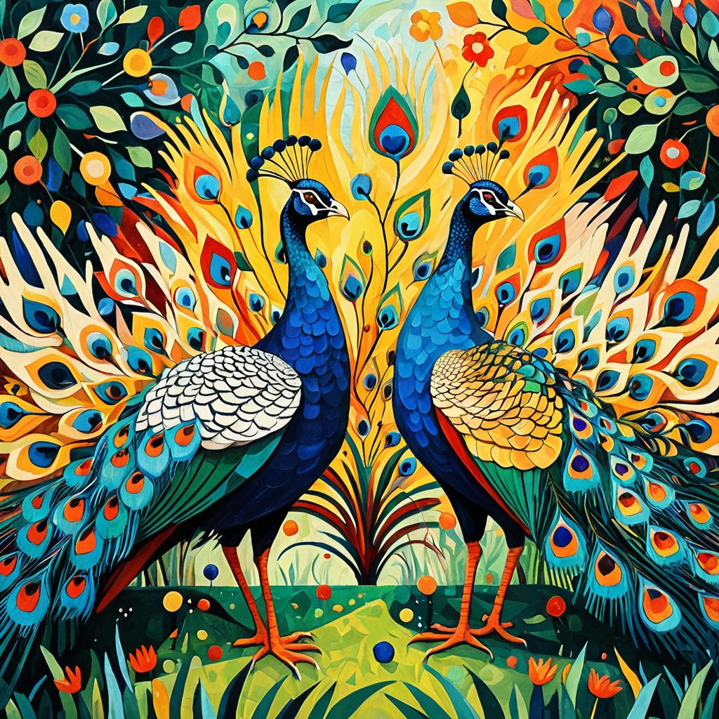 A Kandinsky-style garden of dragonflies with vibrant and chaotic brushstrokes, playful and whimsical. High quality, abstract, colorful, energetic, cubist. lively scene with vivid tones, expressive and artistic, featuring surreal abstract shapes.