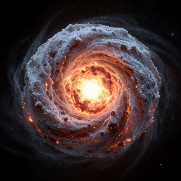 In a cosmic embrace, a supernova cradles its fiery core within a sugar-coated shell, symbolizing the paradoxical dance between destruction and creation, where the warmth of light contrasts with the coldness of space, evoking a profound sense of wonder and existential awe.