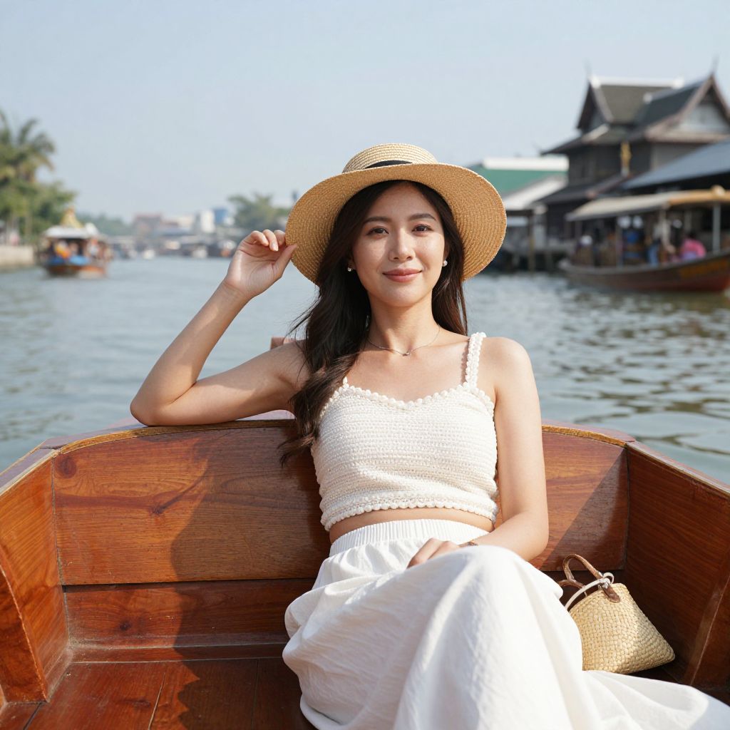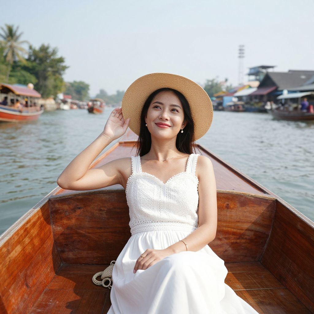 Woman Riding Thai Taxi Boat