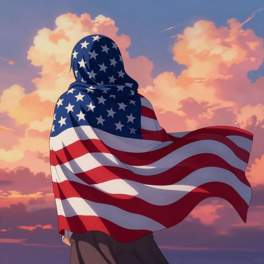 Anime Character with Patriotic Cape