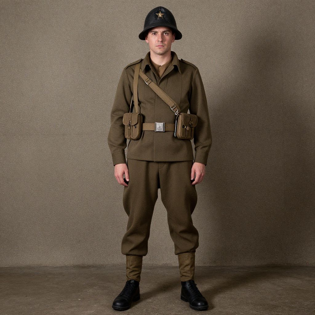 Ww2 Army Costume, man in uniform standing in front of a wall