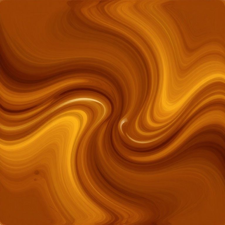Abstract art inspired by caramelo caramel tones, swirling rich browns and golden yellows blending smoothly, glossy textures combined with matte elements, subtle highlights creating depth and warmth, modern digital painting with an inviting feel