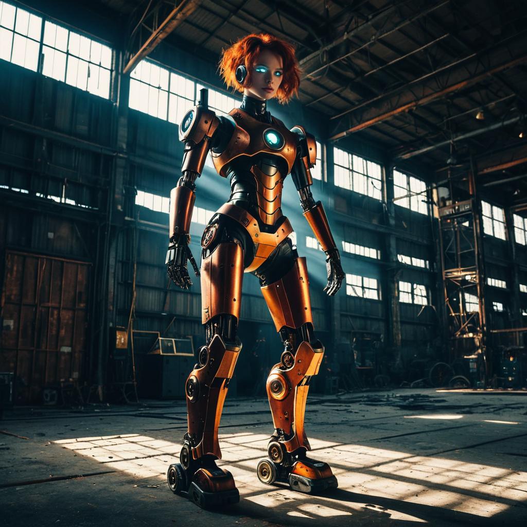 Sleek Humanoid Robot in Dusk Warehouse