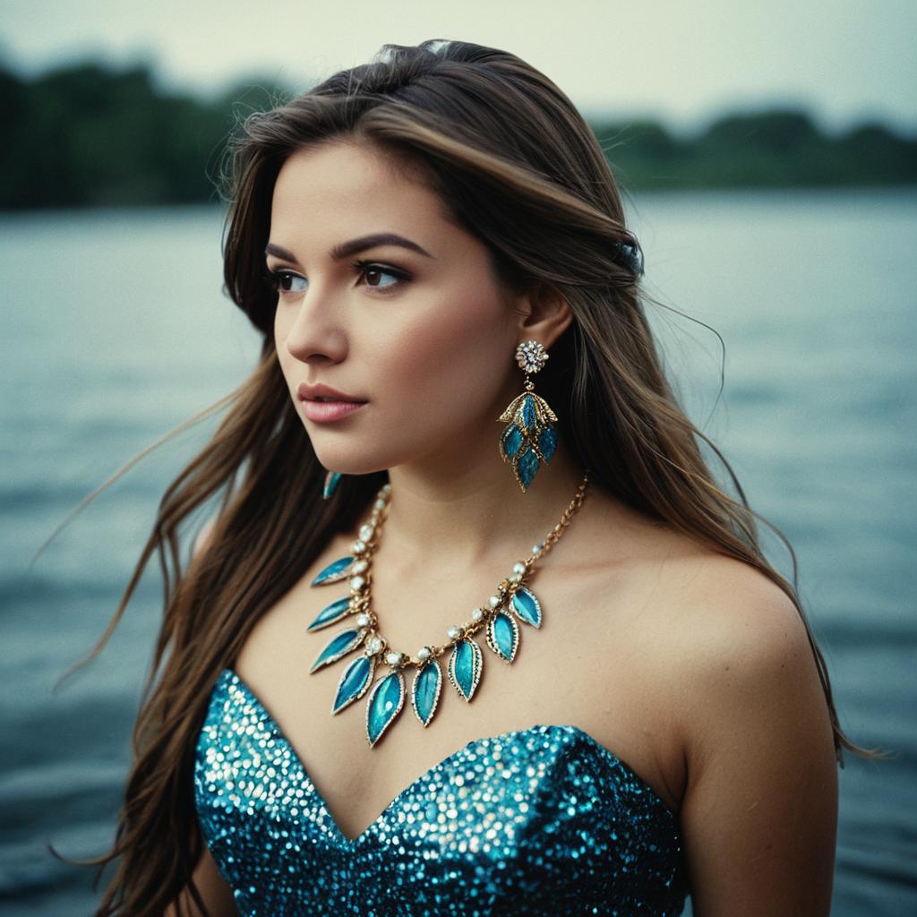 Young Woman in Pink Strapless Dress with Floral Earrings