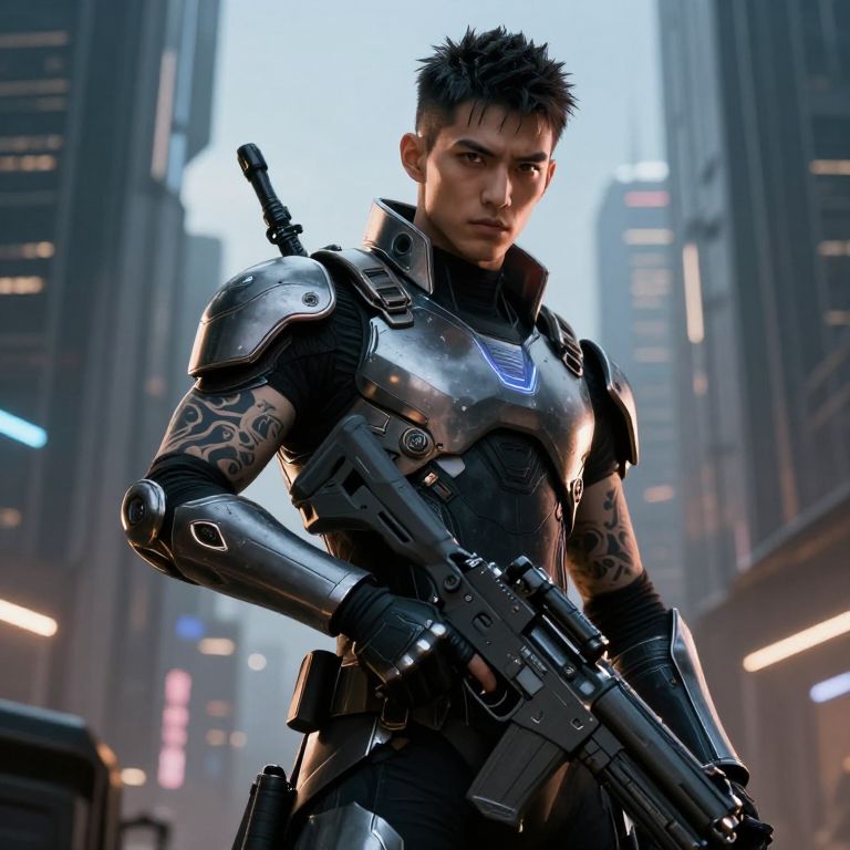 Futuristic Warrior Portrait with Tattoos