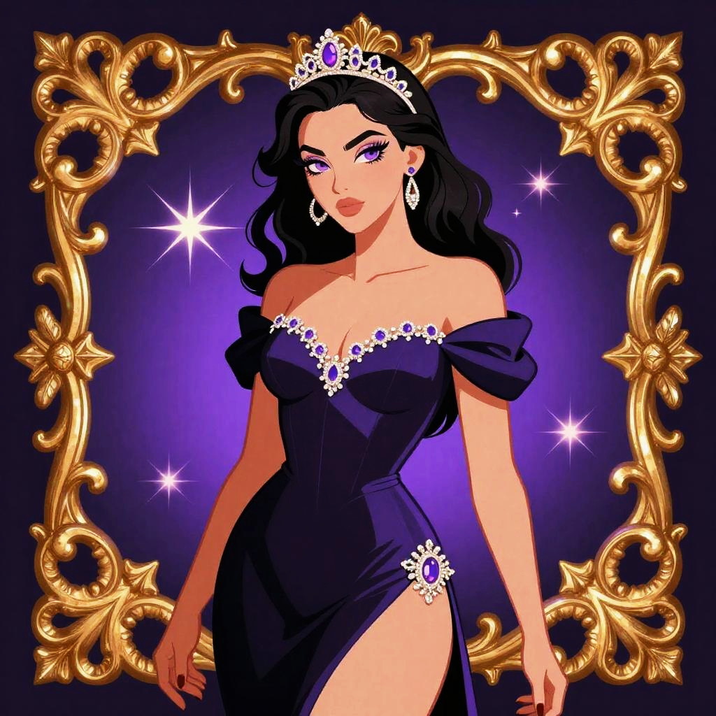 Woman illustration. Cartoon, erotic vibe. Fusion of styles Baroque and QuantumSynthwave