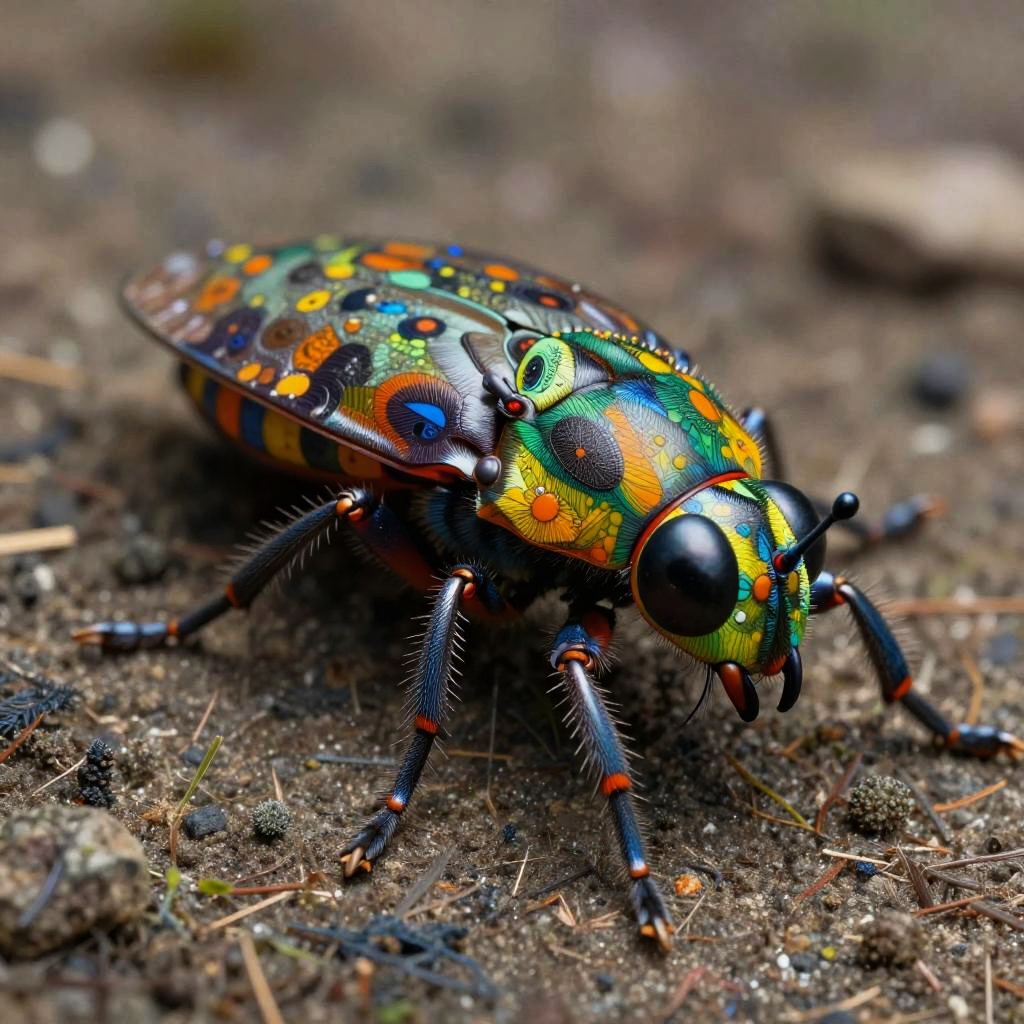 Huge, Macro, Anthropogenesis, insectoid, Concept art, bold lines, highly detailed, (realistic:1.4), (fractal:0.1), colorful, sharp focus, masterpiece, high quality, shallow depth of field detailed background