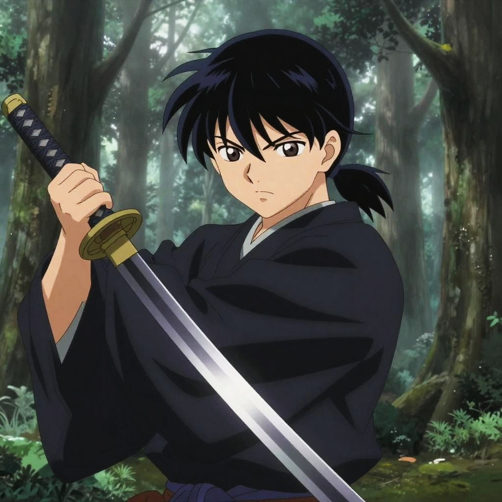 Anime-style drawing of a red-haired karate practitioner in a white gi, striking a fighting stance, with two black-gi opponents in a traditional Japanese