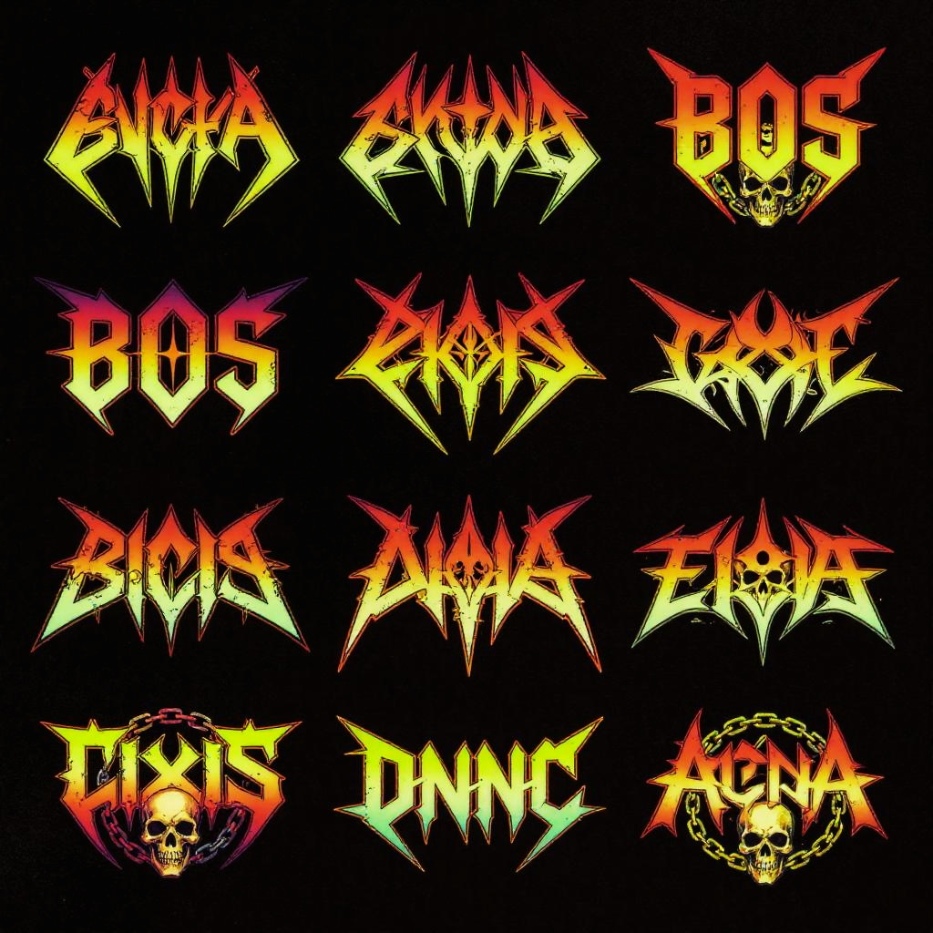 80s Metal Band Logos with Chrome Finish