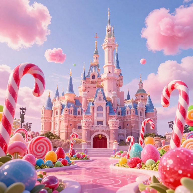 Canddy fantasy land, gigantic candy canes and gumdrops forming surreal landscapes, glowing pastel skies, cotton candy clouds, magical and dreamy setting, intricate textures, vivid colors blending harmoniously