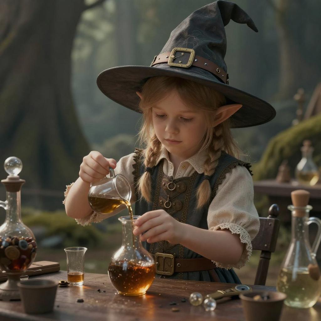 Fantasy Elf Child Making Potions Masterpiece