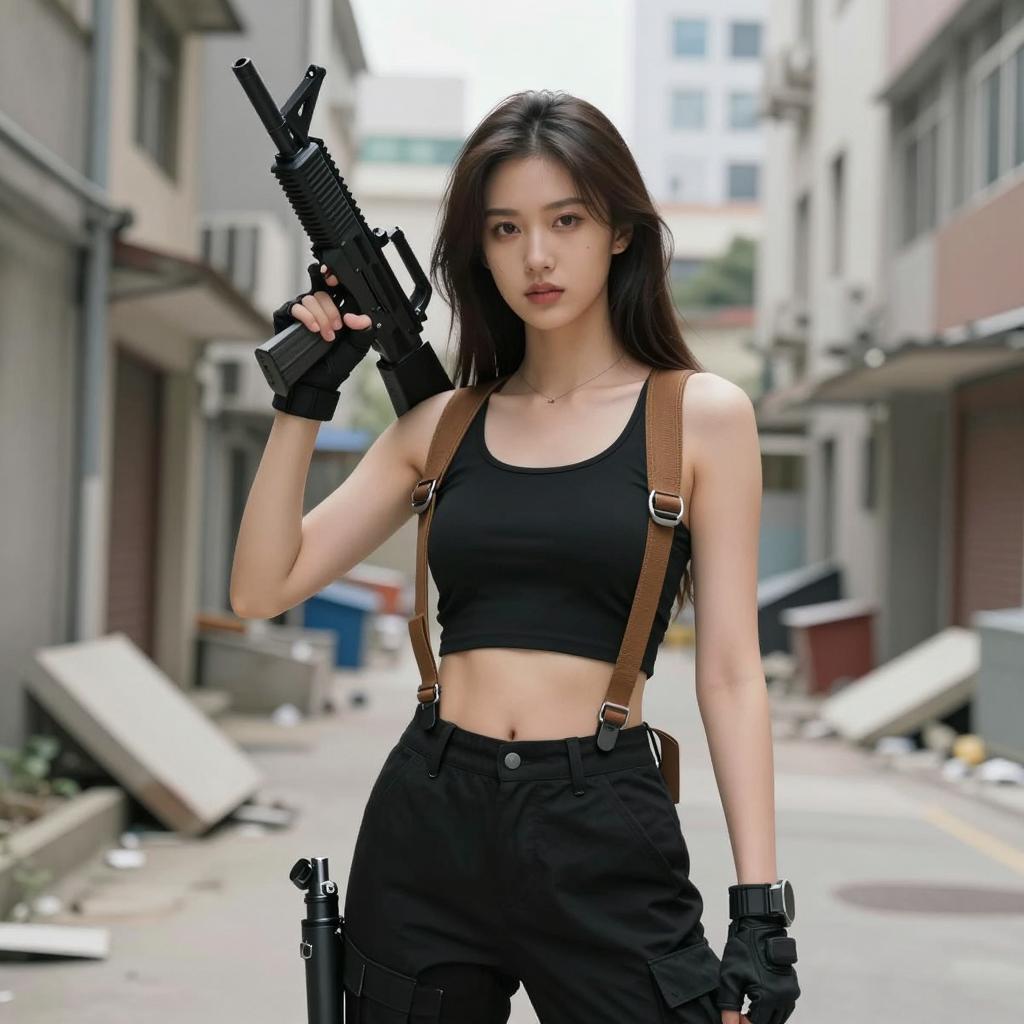 Strong Woman with Firearms in Urban Setting