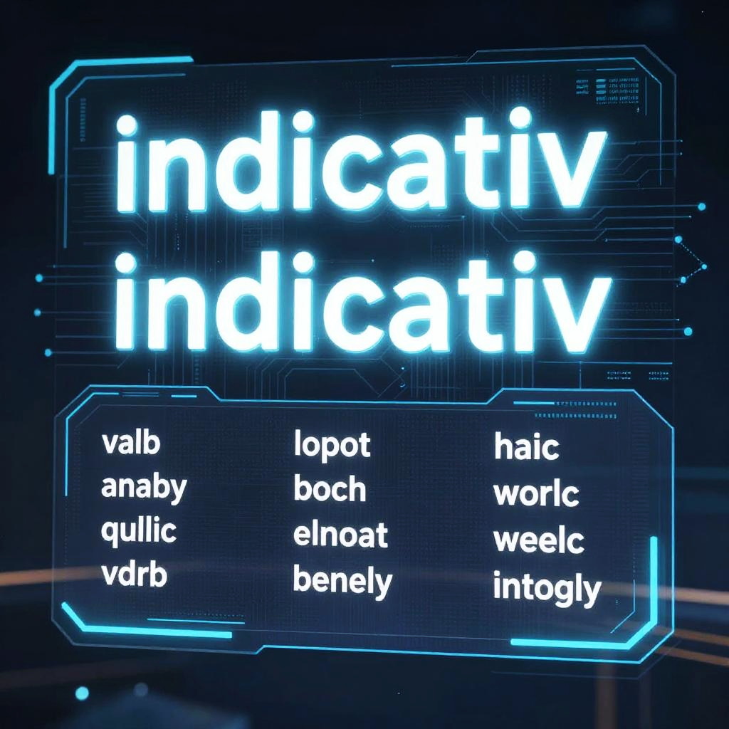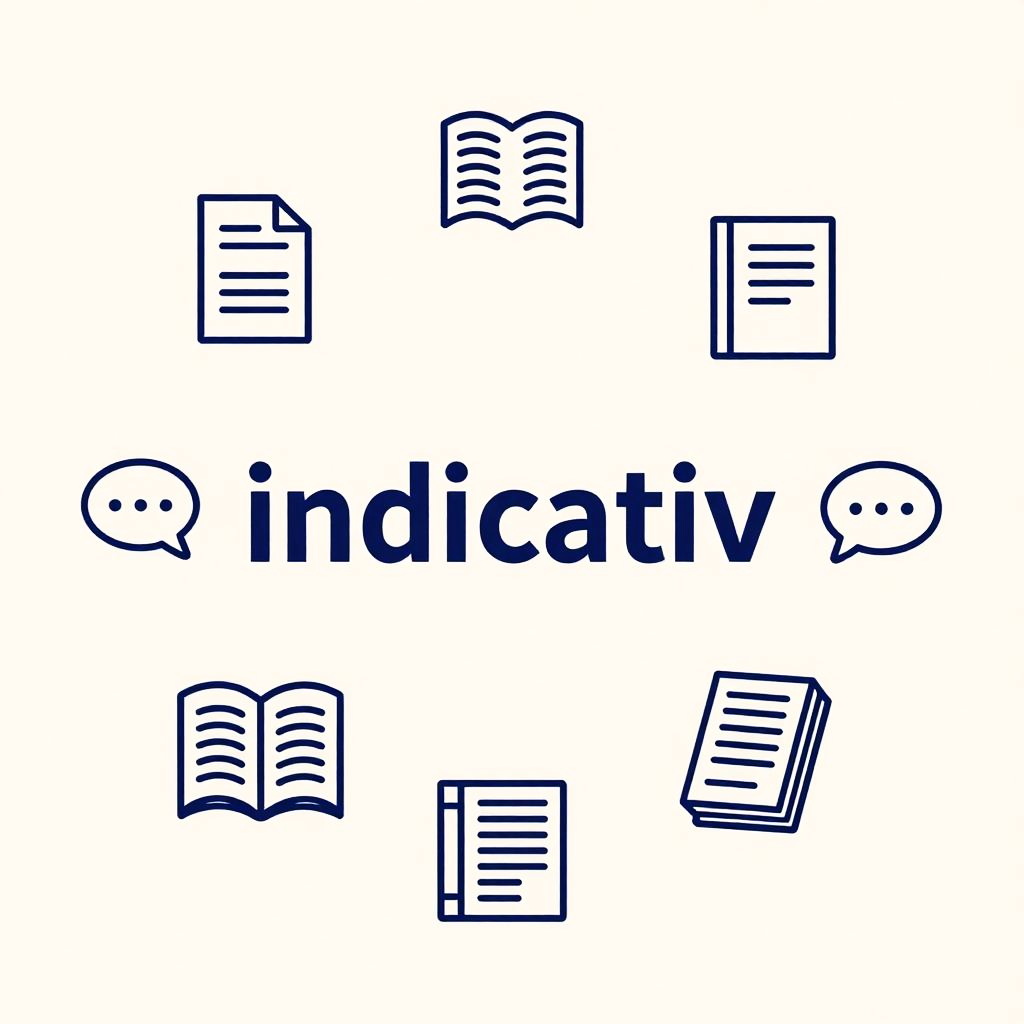 Indicativ tense illustrated as a vibrant, educational infographic with clear, elegant typography, bright color palette, and simple visual grammar elements floating against a soft gradient background, emphasizing clarity and learning.