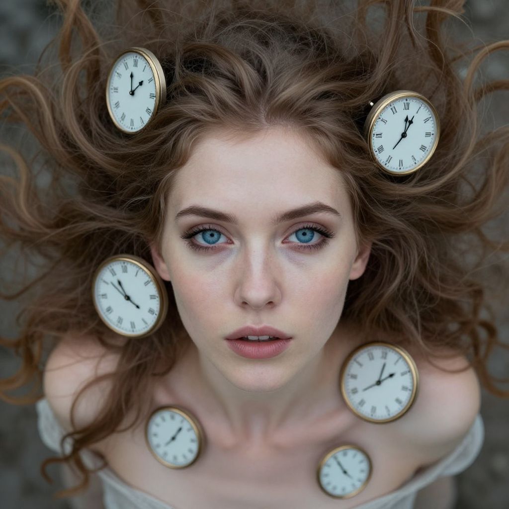 Enigmatic Woman with Surreal Time