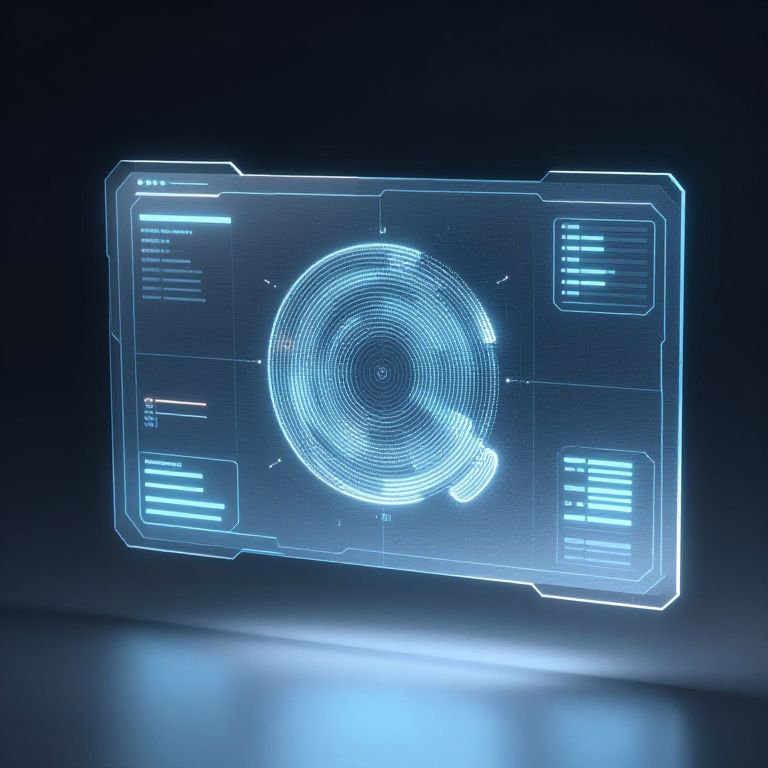 Skindentation as a digital art design on a futuristic interface, floating within a space station control panel, holographic interface, ambient blue and silver tones, clean lines, futuristic minimalism, sci-fi aesthetic.