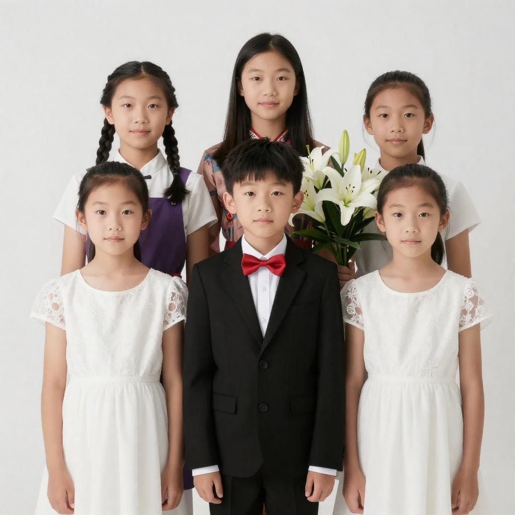 Vibrant Group Portrait of Children and Man