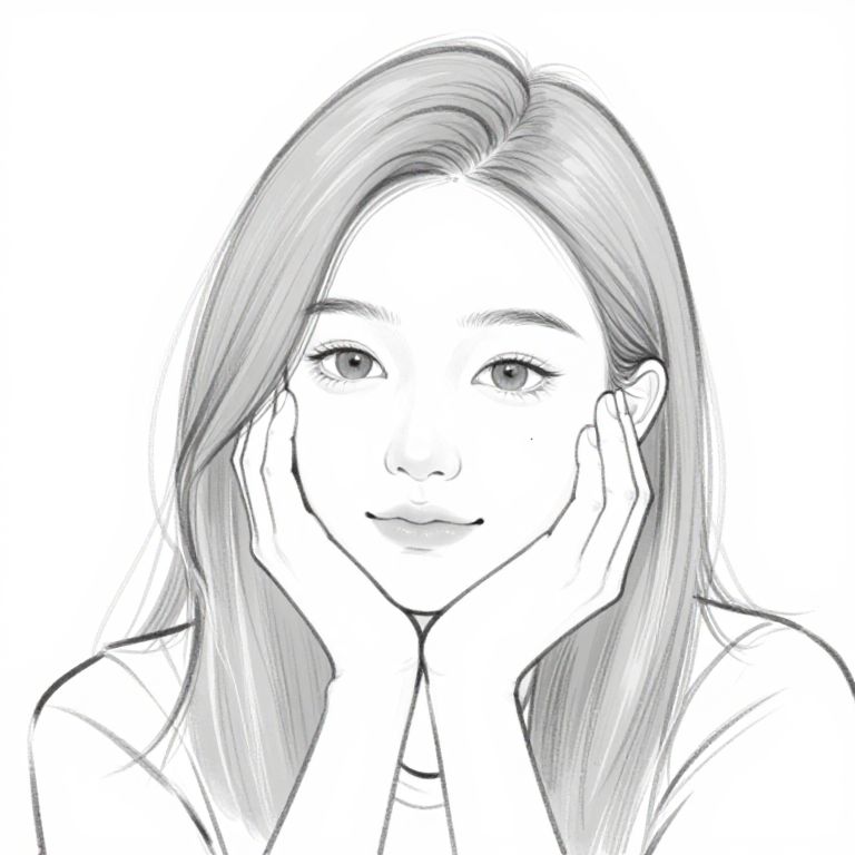 Turn photo into sketch outline concept showing a portrait of a thoughtful person in grayscale, focusing on delicate facial features and hair texture with clean linework, creating a hand-drawn illustrated effect that highlights emotion and character.