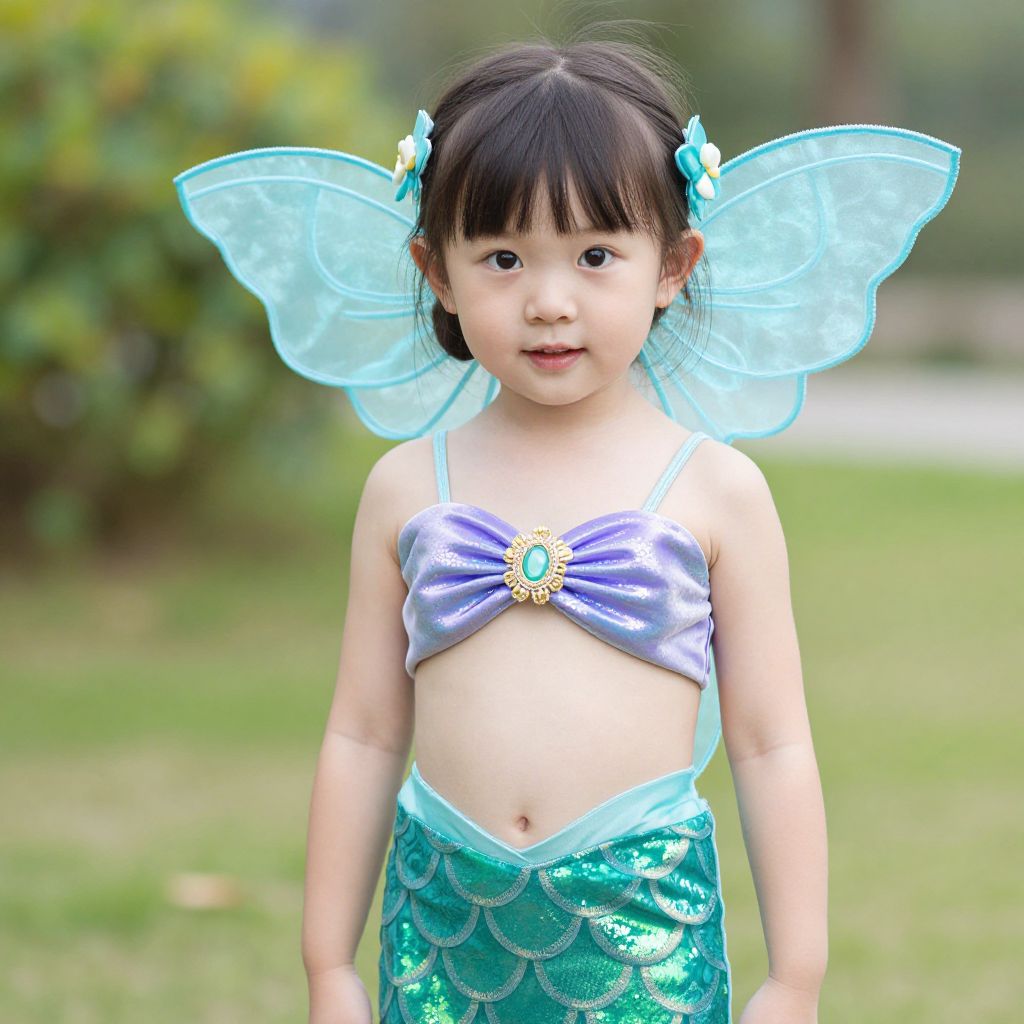 Sweet Mermaid Child Costume, a close up of a little girl in a mermaid costume