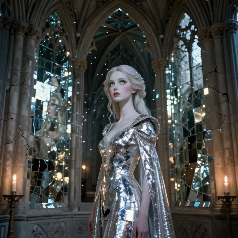 Ethereal Mirror Queen in Gothic Cathedral