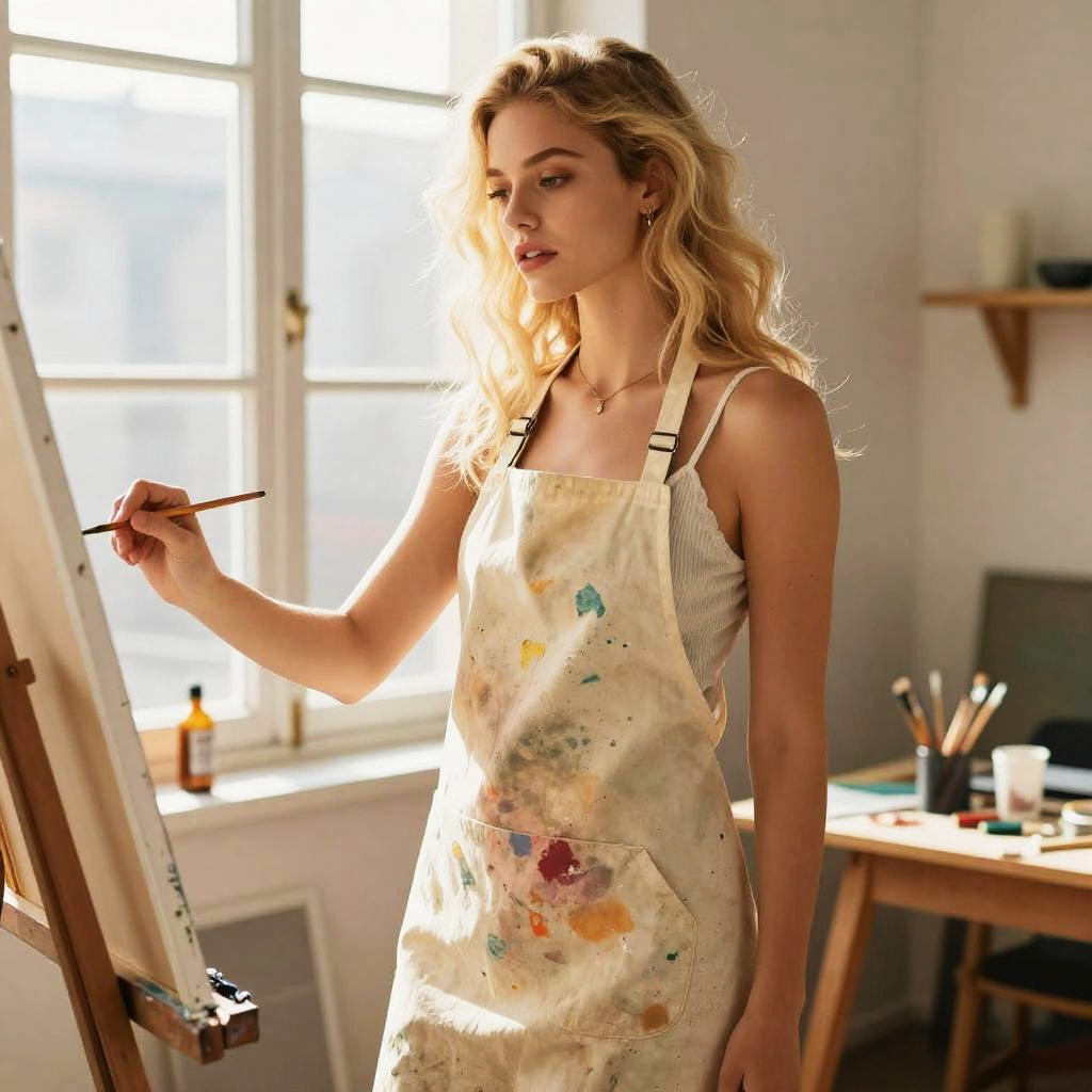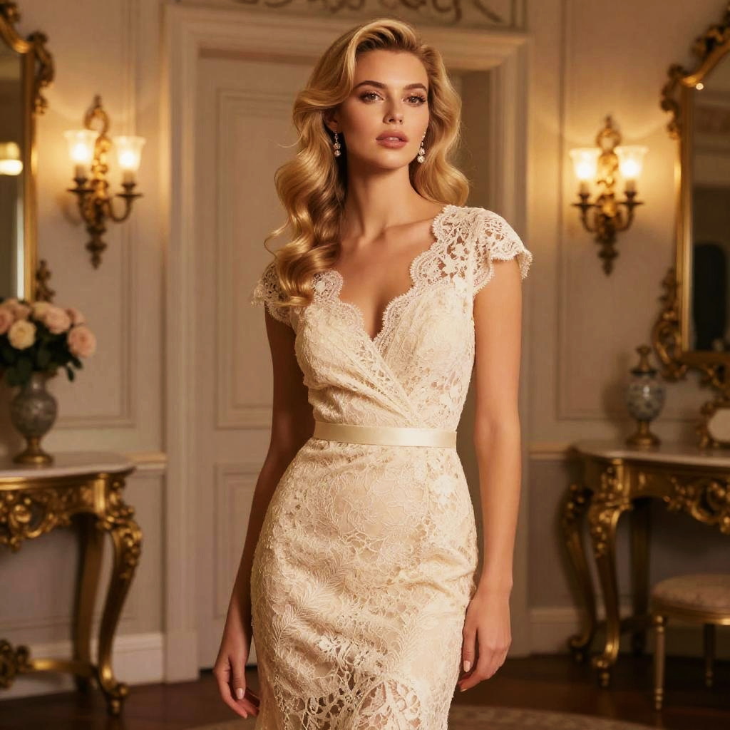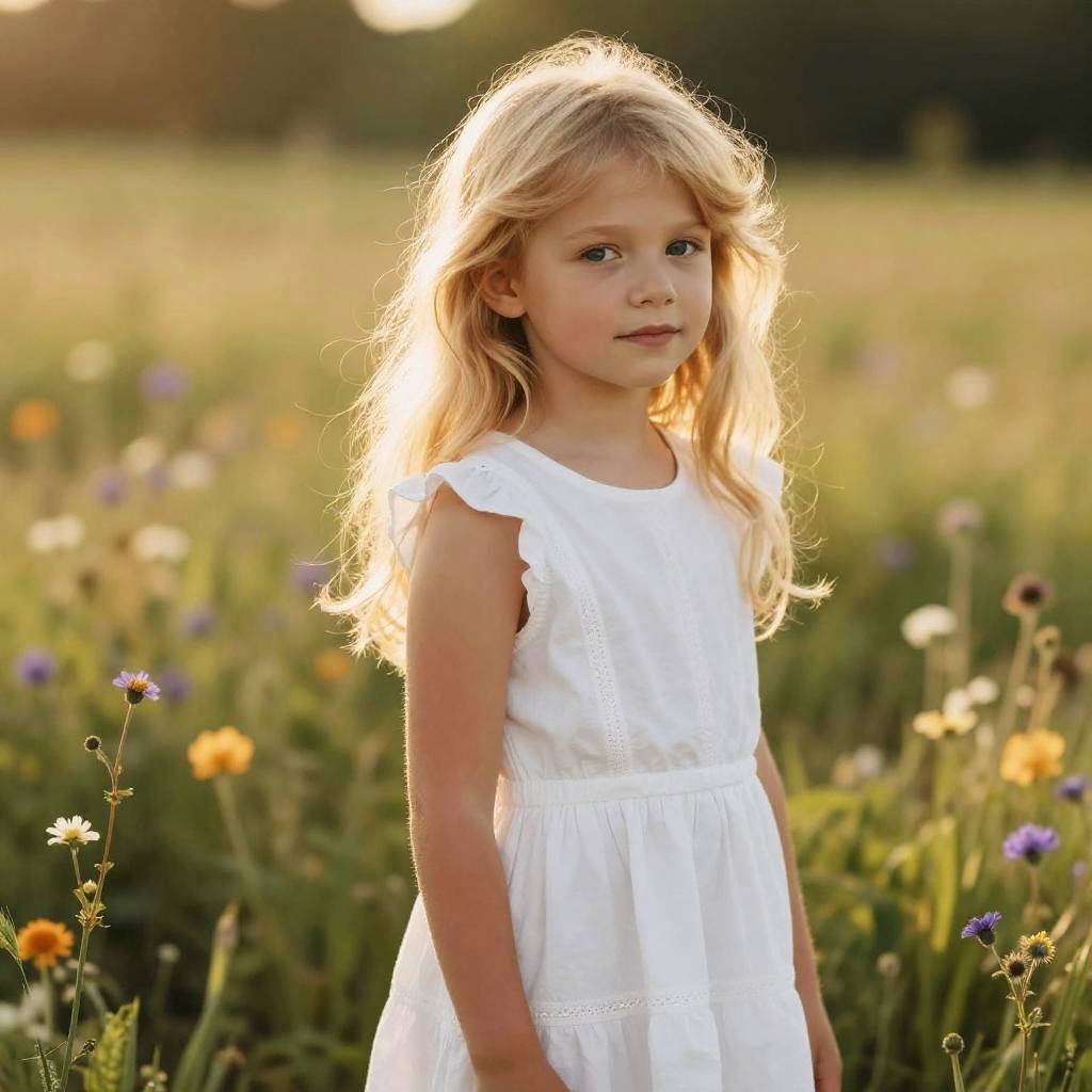 Golden Blonde hairstyle on female influencer, wearing yellow summer romper, in tropical garden, captured in fashion editorial style with bright midday sun.
