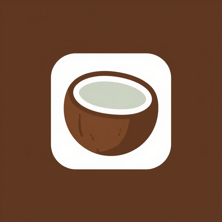 Outline logo for app store, coconut inspired but not obvious, minimalist style, brown, white, green,