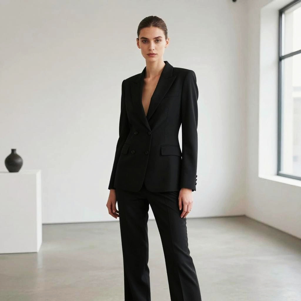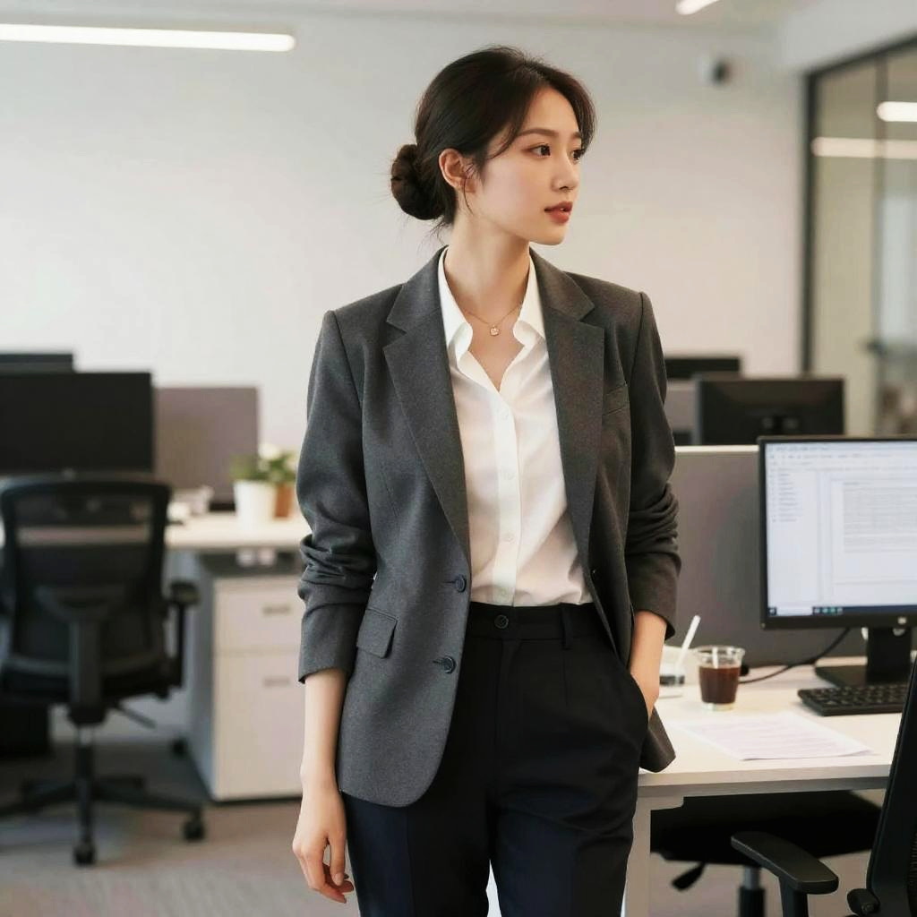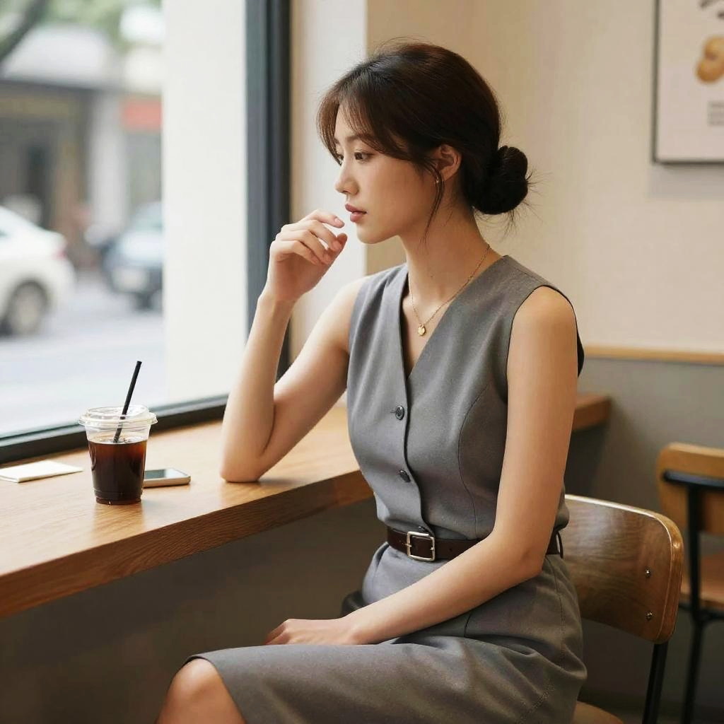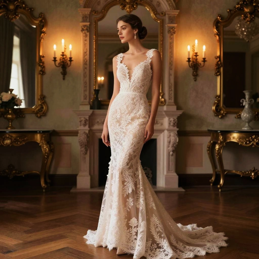 Elegant Woman with Low Bun Hairstyle in Luxury Ballroom