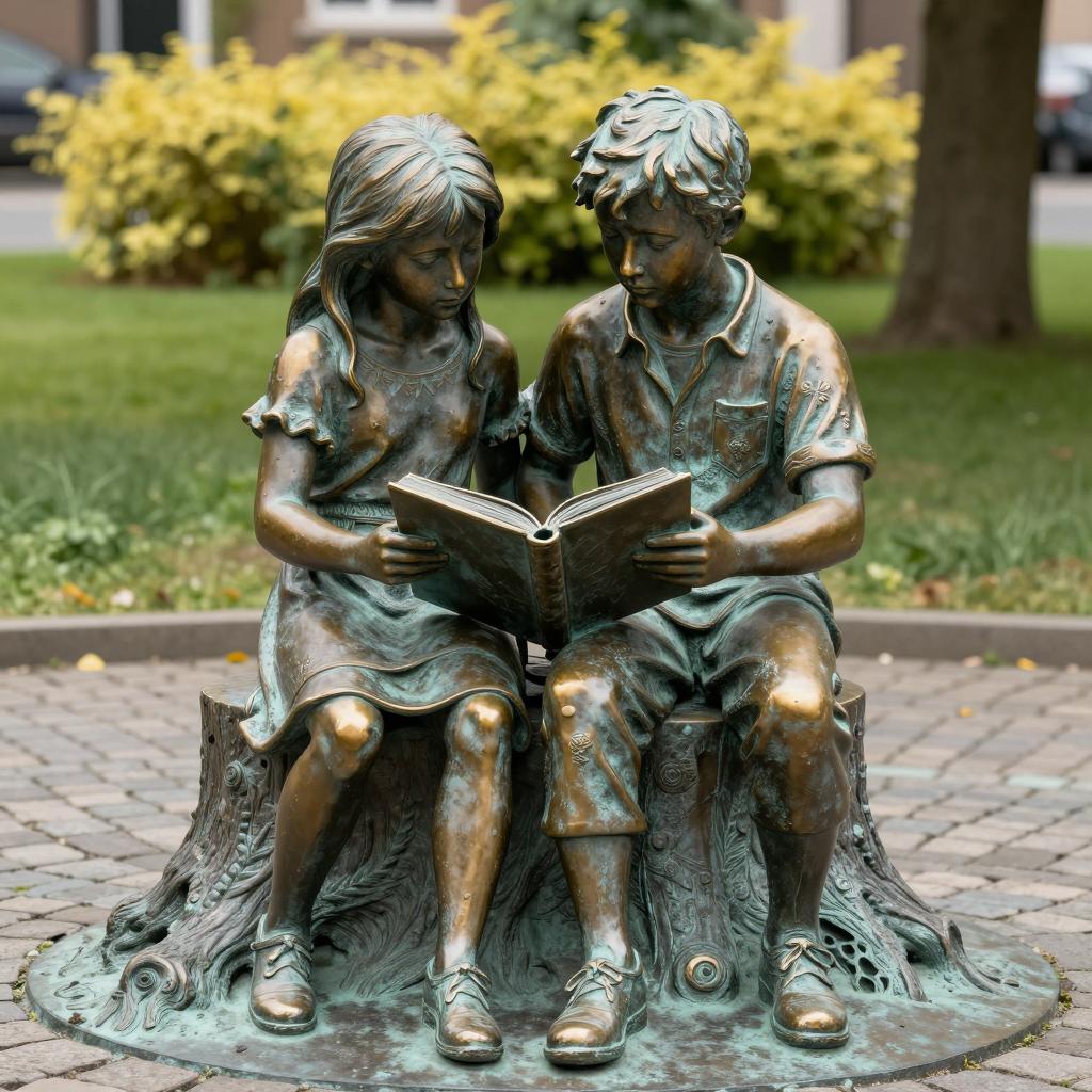 Bronze Sculpture of Children Reading