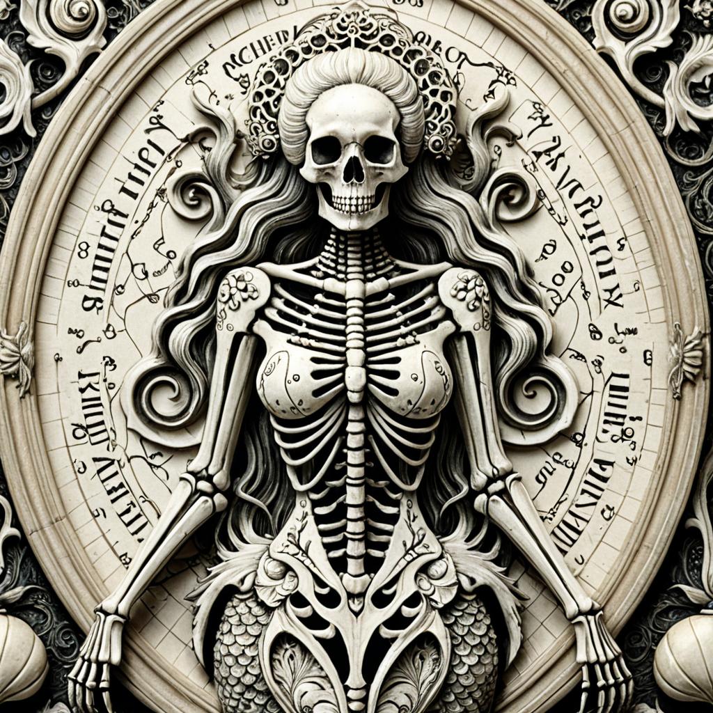 Realistic 3D render of ornately carved rococo dragon skull, with delicate scrimshaw pattern of occult symbols, tentacles, bone and ivory texture, octane render, hyper-detailed