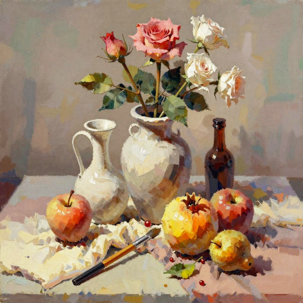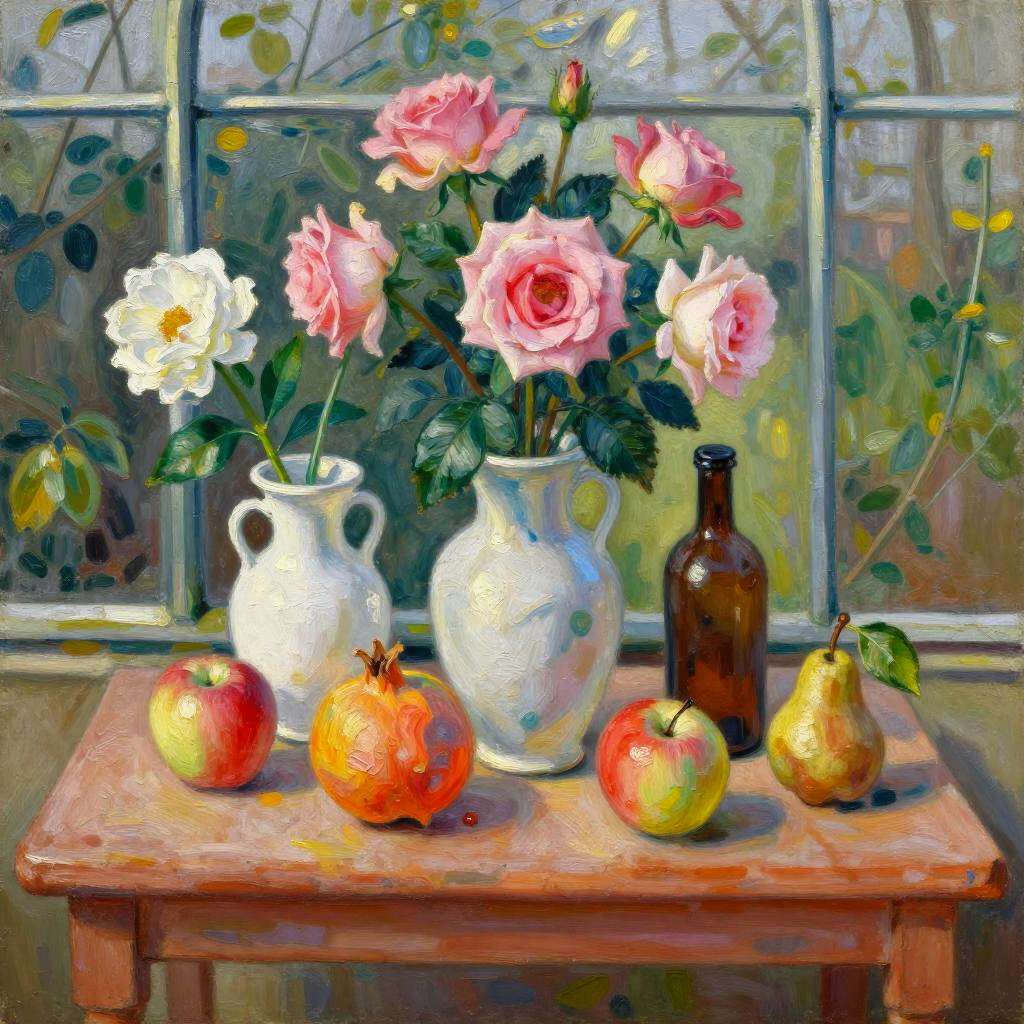Victorian Still Life with Roses and Fruits