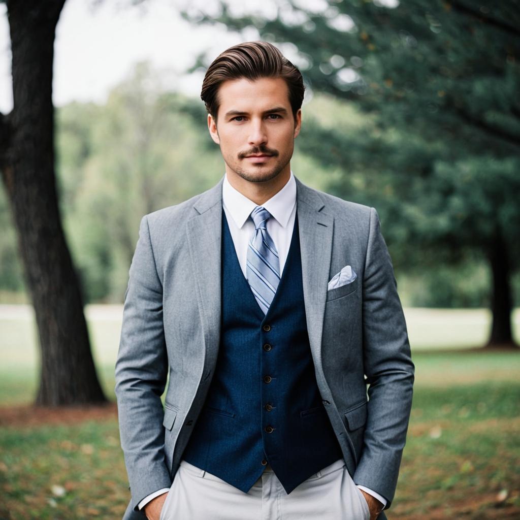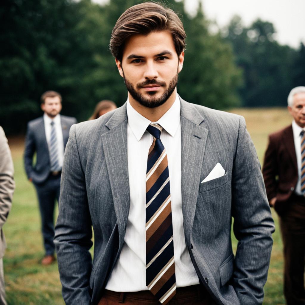 Man in Brown Suit with Red Tie Outdoors