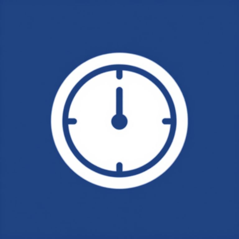 Simple digital graphic of a white clock icon with black hands and four markers, centered on a solid blue background.